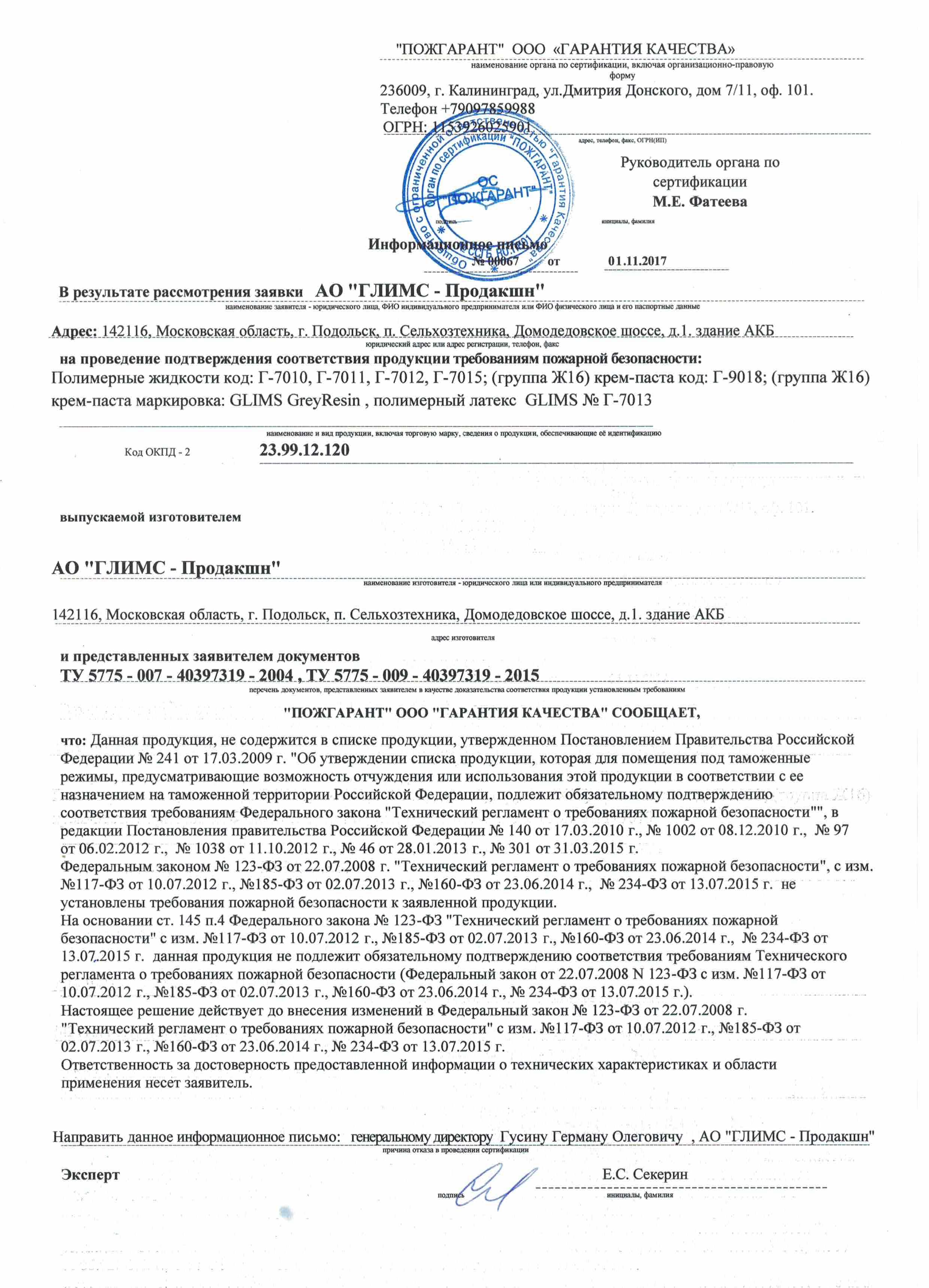 Пожарное отказное письмо Elastic 1K Г-9018 395 кб